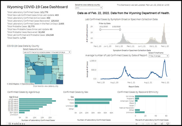 Feb. 11, 2020 to Feb. 22, 2022. Data from the Wyoming Department of Health. |