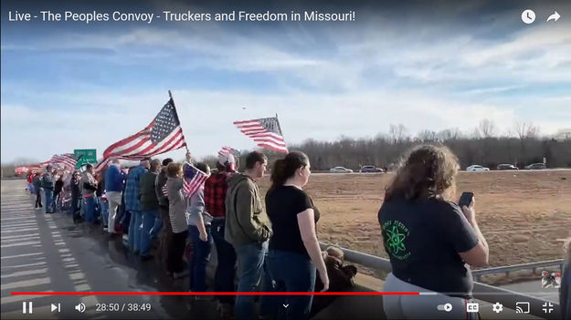| Pinedale Online > News > February 2022 > Trucker Freedom Convoys to come through Wyoming > Cheering on the convoy in Missouri |