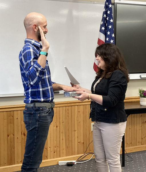 Pinedale Town Clerk Maureen Rudnick swears in Scott Kosiba for his first term on the Pinedale Town Council. |