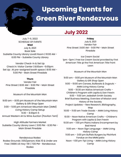 Pinedale Online > News > July 2022 > 2022 Green River Rendezvous Schedule > Schedule