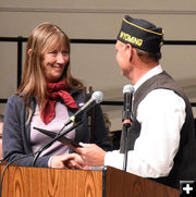 Community Awards were given out next. A Patriot Award was given to Windy Noble for her many efforts with the VFW Auxiliary. Freedom of the Press Awards were given to Joy Ufford with the Pinedale Roundup/Sublette Examiner newspapers, and Dawn Ballou with Pinedale Online. A Community Veteran Support Award was given to Pure West gas company for their many contributions sponsoring programs to enrich the community.