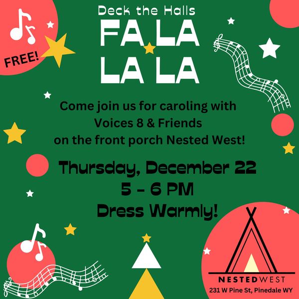 Pinedale Online > News > December 2022 > Caroling with Voices 8 and Friends at Nested West Dec. 22 > Caroling