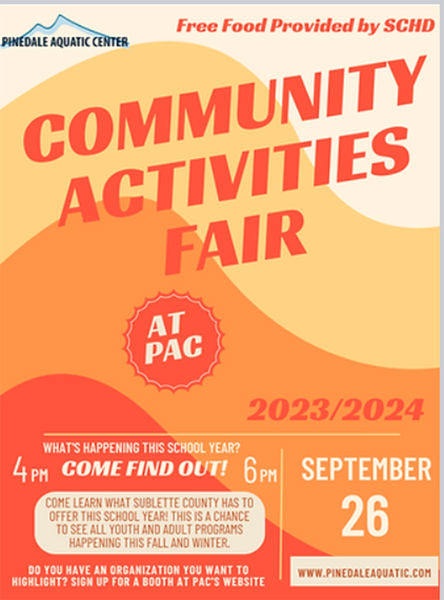 | Pinedale Online > News > September 2023 > Pinedale Aquatic Center Fall Expo Sept. 26 > 2023 PAC Fall Expo |