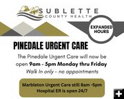 New Urgent Care hours in Pinedale (March 13, 2026)