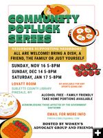 The Women’s Advocacy Group and Friends are hosting a series of Community Potlucks to help support those who are affected by the government shutdown. All are welcome. Bring a dish, a friend, the family, or just yourself. The meals will be from 5-8PM in the Lova