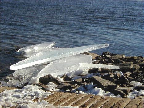 Ice chunks washed ashore on lower Fremont Lake boat ramp |
