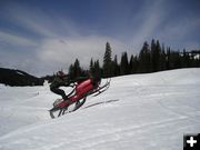 A snowmobiler enjoys late season hill climbing in the Horse Creek area of the Wyoming Range in March.