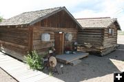 To the left is the Halfway Post Office building. On the right is the back side of the Black Homestead Cabin. This post office was operated out of various locations over the years to service rural residents in the Cottonwood Creek/Ryegrass drainage area between Daniel and Big Piney.