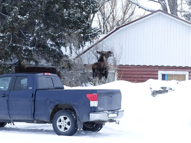 Pinedale Online > News > February 2017 > Finding food > Standing on the snow pile
