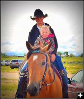 Clint competed in rodeo and his Dad ropes, and Keeley's father and uncles competed in rodeo, so it is just in their blood. They are passing on the tradition to their daughter Ciara who is almost four and just over two feet tall. Every Tuesday and Thursday evening is Father/Daughter Roping Date Night. They load steers into the chute, Ciara pulls open the gate and Clint chases a steer and ropes it. In between, Ciara practices roping an orange cone. As I was getting all this information, Keeley told me that Ciara ropes the cone late into the evening and then falls asleep in the truck on the way home.