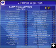 The National Weather Service posted wind gust readings for
